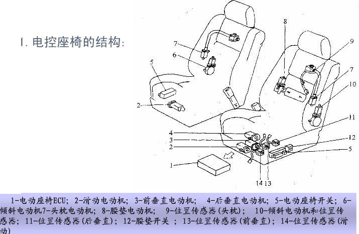 通过电动座椅调节开关,即可完成不同的调节功能,如电动座椅前端上、下调节。