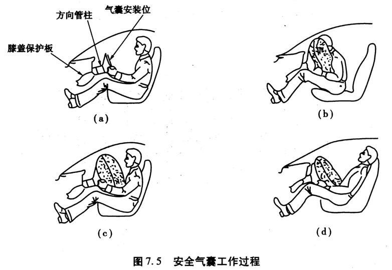 通常碰撞发生在0.127s内,而安全气囊起作用时间在0.07s内,因此在汽车发生碰撞时,人体头部撞到车内其他部件前,安全气囊有充分的时间打开。
