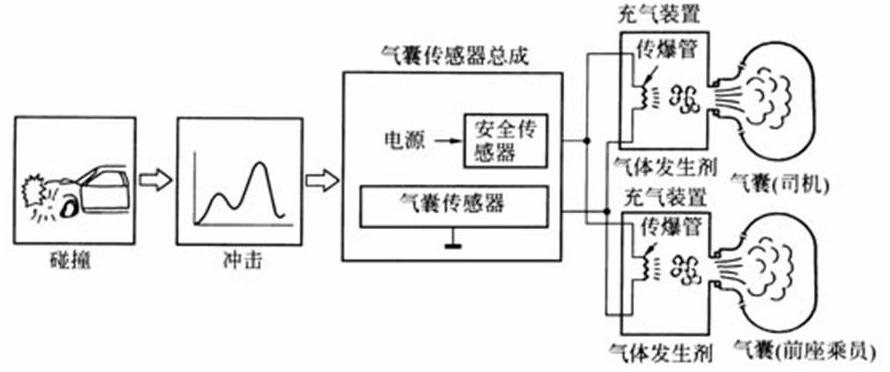 通常碰撞发生在0.127s内,而安全气囊作用时间在0.07s内,因此在汽车发生碰撞时,人体头部撞到车内其他部件前,安全气囊有充分的的时间打开。