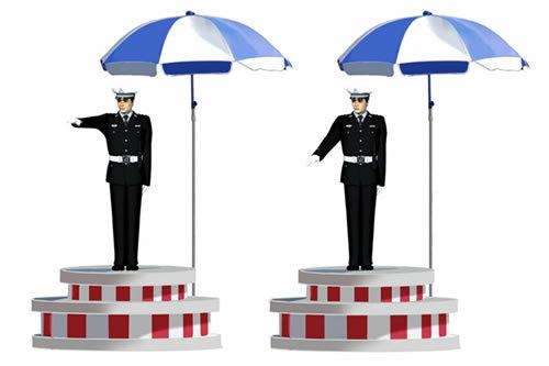 前安全警告灯:双臂向两侧伸展,双手示意,灯光闪亮。