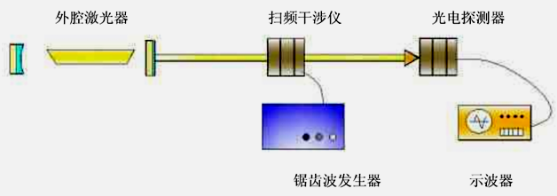 He-Ne激光器、激光电源、小孔光阑、共焦球面扫描干涉仪、锯齿波发生器、放大器、示波器等。