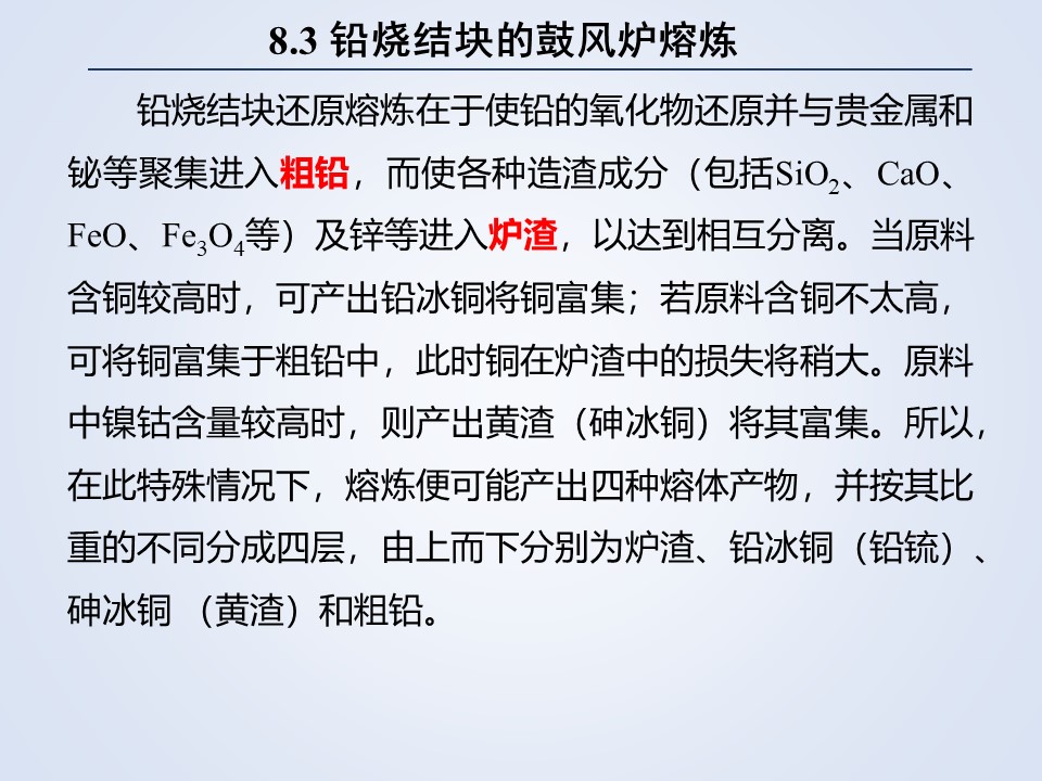 • 8.3 铅烧结块的鼓风炉熔炼