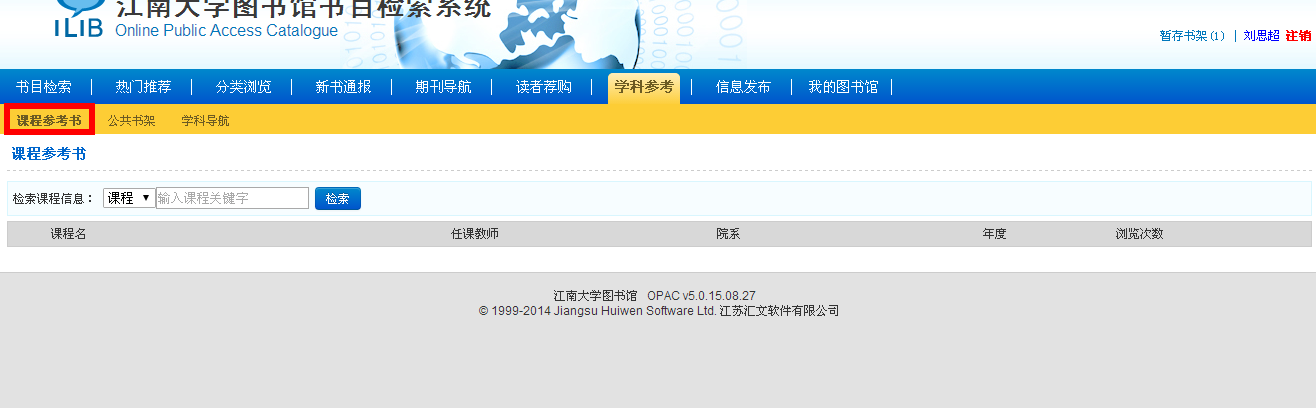 点击“课程参考书”按钮,点选并填写课程信息,即可检索到相应课程所对应的书目。