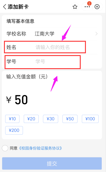 注意:首次使用支付宝校园卡充值,需要绑定个人信息