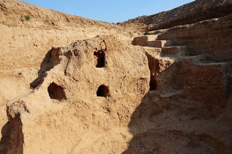小型墓:墓坑小而狭长,一般长2米,宽0.5米左右。大多没有木质葬具和随葬品。这类墓约占墓葬总数的90%。