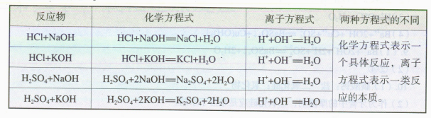 要求学生在书写三种碱的电离方程式时要上下对齐。可在板书或课件上框定三者电离出的共同的离子OH-,如下所示
