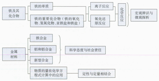 本章主要介绍了铁及其化合物、金属材料、物质的量在化学方程式计算中的应用等内容。本章将上述内容分为两节,第一节介绍铁及其化合物,第二节介绍金属材料及物质的量在化学方程式计算中的应用。教材主要围绕“铁和铁合金”这条线索进行编排。