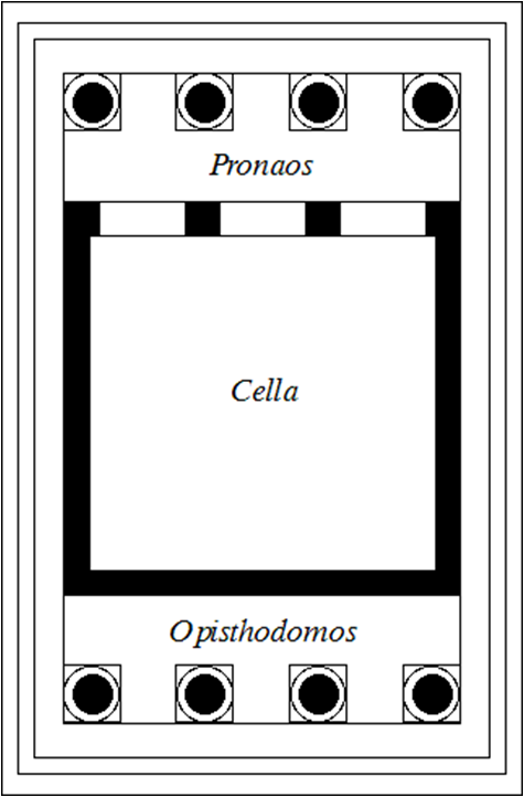 前后各四根爱奥尼式柱子,但柱子比较粗壮(细长比1:7.68)