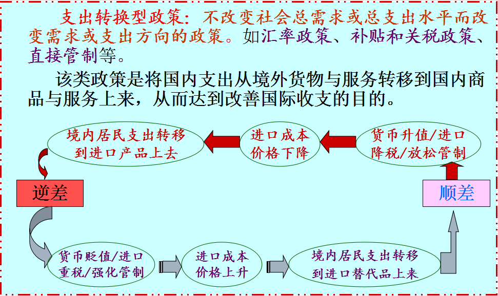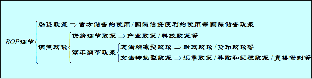 国际收支政策调节的全部目的在于:当国际收支失衡时,正确使用并搭配不同类型的调节政策,以最小的经济和社会代价达到国际收支的平衡或均衡。