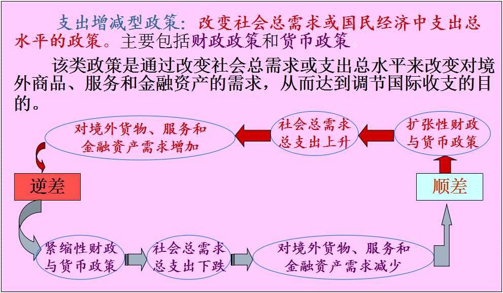 结论:一国的国际收支无论是出现逆差(压力较大)还是顺差(尽管压力较小),尤其是长期的、巨额的不平衡,各国均要根据具体情况,采取相应措施予以调节,以利本国经济的健康发展。
