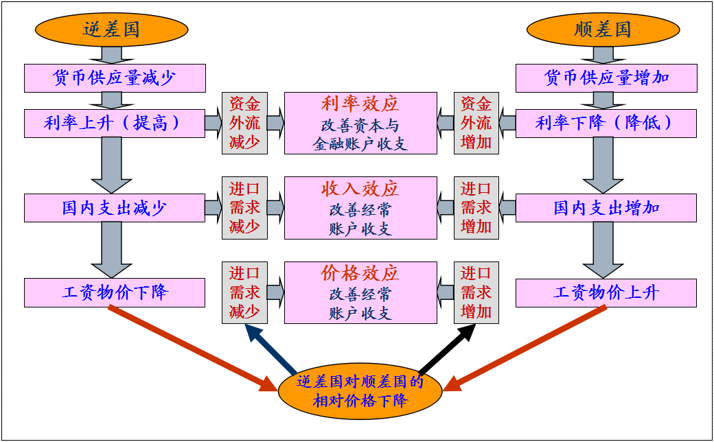 国际收支自动调节(BOP Autonomous Adjustment):由国际收支失衡引起的国内经济变量变动对国际收支的反作用过程。