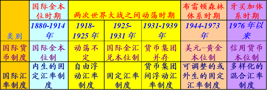 ⑴ 单一货币(美元)储备制度(美元发挥着世界货币的职能);