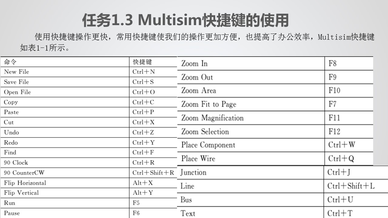 任务1.3 Multisim快捷键的使用