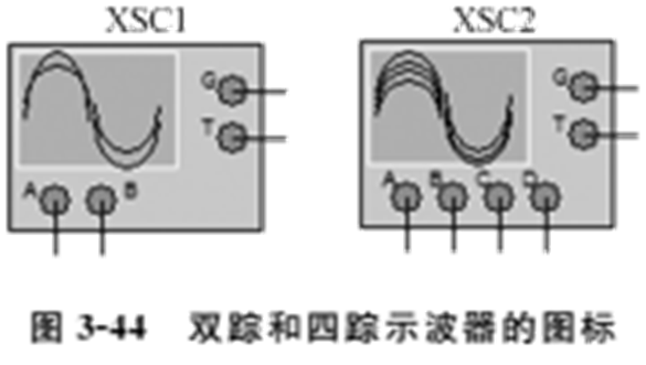 示波器图标上的连接端:A通道接线端,B通道接线端,C通道接线端,D通道接线端,G接地端,T外触发端。