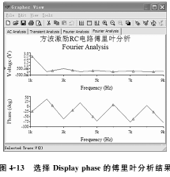 傅里叶分析(FourierAnalysis)是分析周期性非正弦信号的一种数学方法,它将周期性非正弦信号转换成一系列正弦波和余弦波,其中包括原始信号的直流分量、基波分量以及高次谐波。下面以如图4-11所示的方波激励RC电路为例,说明傅里叶分析的具体操作步骤。