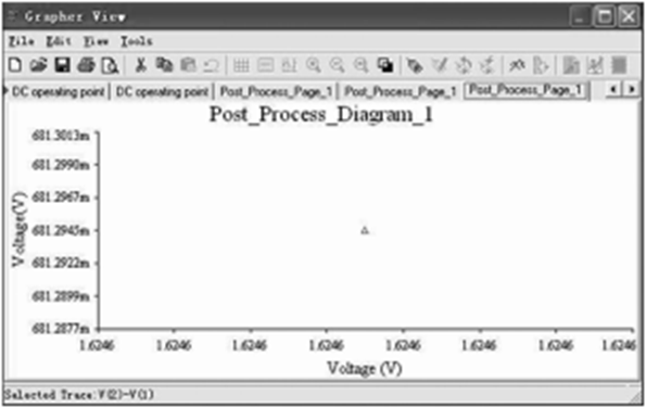 首先在Multisim10电路窗口中创建如图4-20所示的电路。在使用后处理器之前,先对电路进行直流仿真分析(DCOperating Point Analysis),选择分析的变量为V1和V2。