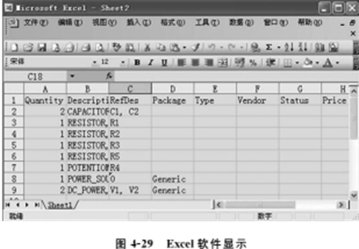 ToMS Excel App:将当前元件列表清单用微软公司的Excel软件显示,如图4-29所示。