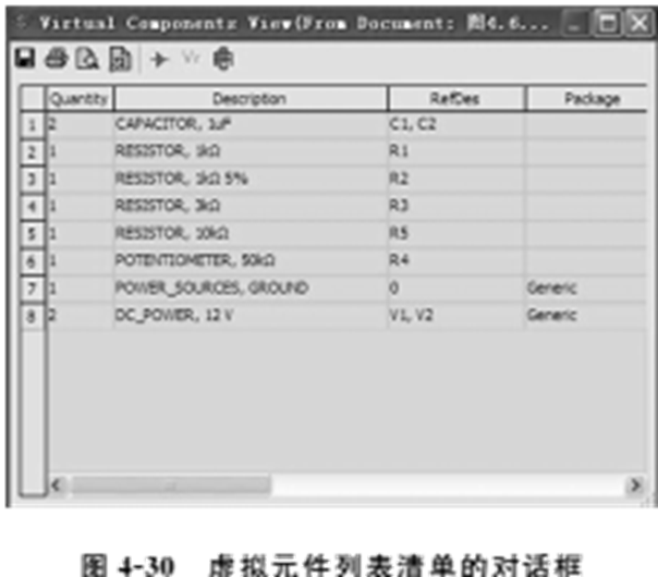 ShowVirtual Components:弹出“虚拟元件”列表清单的对话框,如图4-30所示。