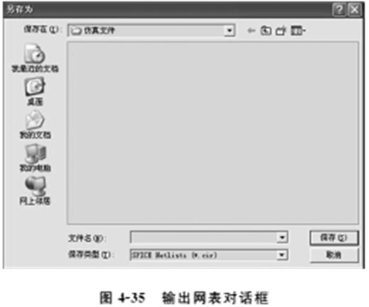 (1)单击Multisim10用户界面中Transfer菜单下的ExportNetlist命令,将会出现SaveAs保存对话框,如图4-35所示。