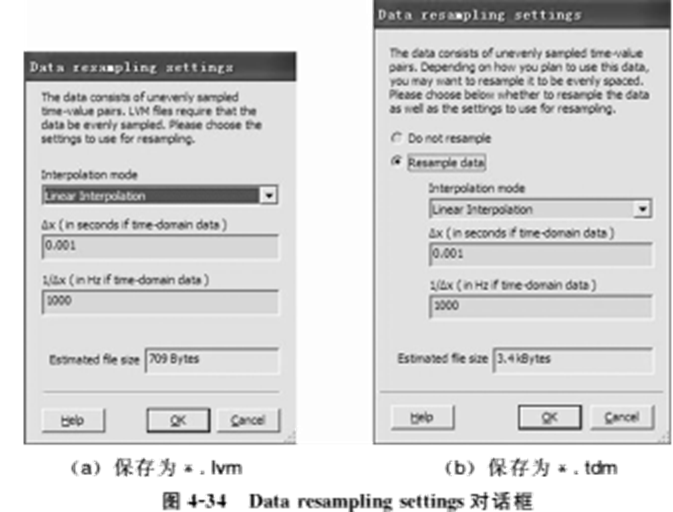(4)在Select Traces对话框选择需要导出的轨迹(即分析结果)然后单击OK按钮,弹出Dataresampling settings对话框(保存文件类型不同,对话框内容也不同),如图4-34所示,通过该对话框可对数据重采样进行设置。