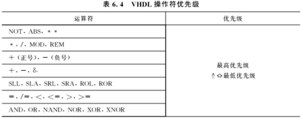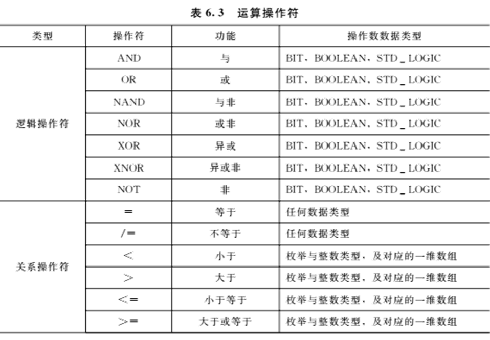 由表6-4知,逻辑操作符可以对位、标准逻辑位和布尔类型的数据进行操作,要求运算符左右的数据类型必须相同。