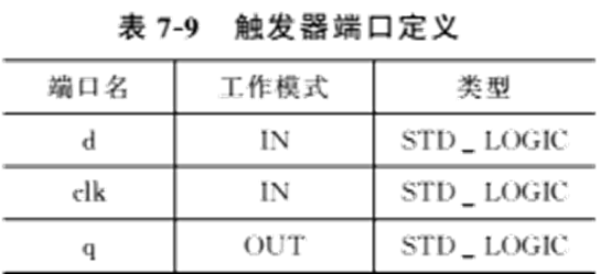 根据D触发器的作用,在时钟clk有效时,将输入信号d赋值到输出信号q,采用行为描述方式,结构体可表示为: