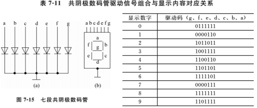 (2)七段数码管由七个发光二极管组成,通过七个发光二极管亮暗的不同组合,可以显示多种数字、字母以及其他符号。要使数码管显示正确的内容,必须根据要显示的内容向数码管送出驱动信号,即进行译码驱动。以共阴极数码管为例,显示内容和驱动信号组合对应关系如表所示。请编写程序,驱动共阴极数码管显示不同内容。
