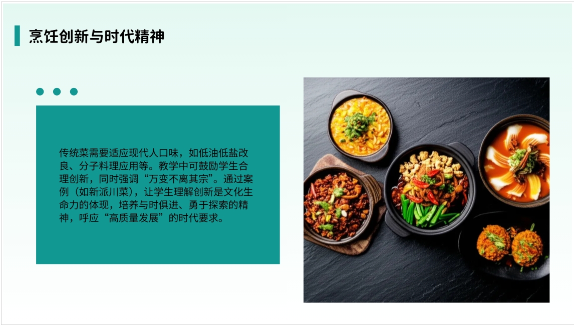 辽菜作为中国饮食文化组成部分,具有深厚的文化底蕴,是辽宁社会发展的历史见证,具有重要的历史、文化价值,其制作技艺体现了辽菜内在的科学价值,对饮食文化的传承发展起到重要作用。