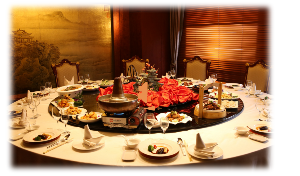 我们选用圆形台面,中心的图案设计选用代表温馨的花朵,烘托轻松、欢快、其乐融融的宴会主题。