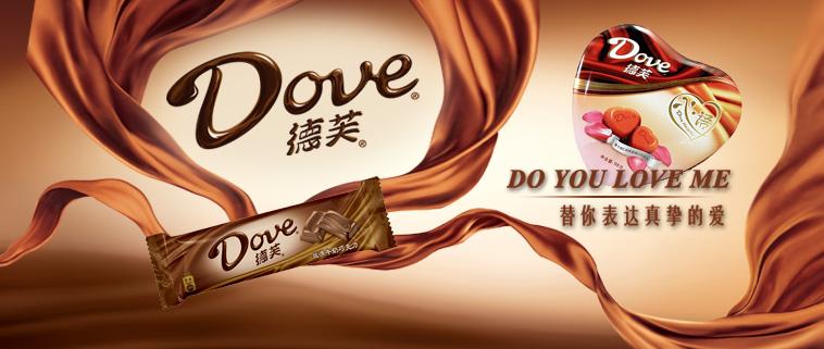 德芙以品牌、品质及香滑的口感为主线,体现与朋友分享的甜蜜,口号“牛奶香浓, 丝般感受”表现了年轻、欢乐和浪漫。倡导以乐观浪漫的态度在日常生活中获得快乐,分享快乐。德芙广告语:“得到你是我一生的幸福!”。用DOVE来讲,巧克力可以用来表达Do you love me的含义,或者“得到你是我一生的幸福”(得福)。
