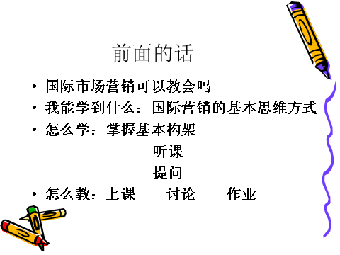 | 教学重点 | 国际市场营销的基本概念&国际市场营销观念变化轨迹 | ||