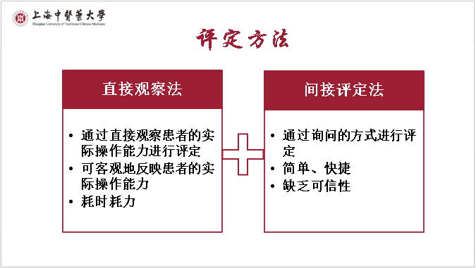 如果是患者自己测评,需时5~10分钟,若是直接观察需时20~60分钟,据国外研究报道,其有效性同Katz指数相比k=0.77,与kenny自理评定量表相比k=0.42,可靠性高,重复可靠性指数k=0.98.优点是可靠性、有效性较好,被广泛使用,易于管理;缺点是对于较高水平功能的患者会产生天花板效应(表3-1)。