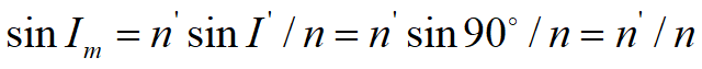 •例如 从玻璃到空气的交界面:n=1.5,n′=1,