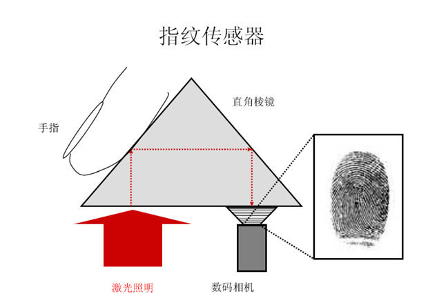 光线经玻璃射到指纹谷的地方后在玻璃与空气的界面发生全反射,光线被反射到CCD,而射向脊的光线不发生全反射,而是被脊与玻璃的接触面吸收或者漫反射到别的地方,这样就在CCD上形成了指纹的图象