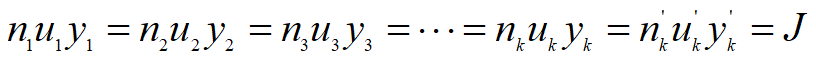 拉亥不变量J不仅对一个折射面的两个空间是不变量,而且对整个光学系统的每一个面的每一个空间都是不变量。