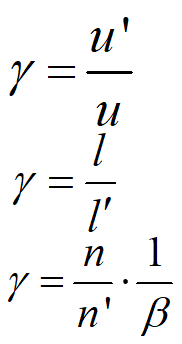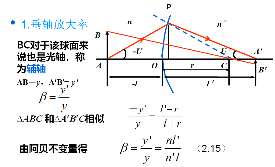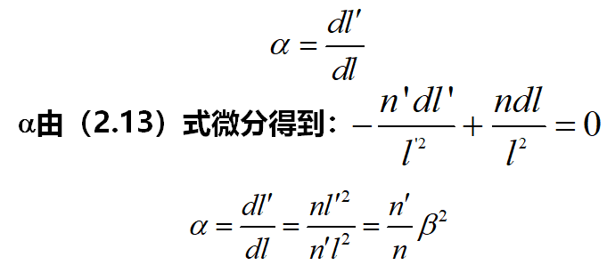当求得一对共轭点的截距l和l¢后,可求得通过该共轭点的一对共轭面上的垂轴放大率。