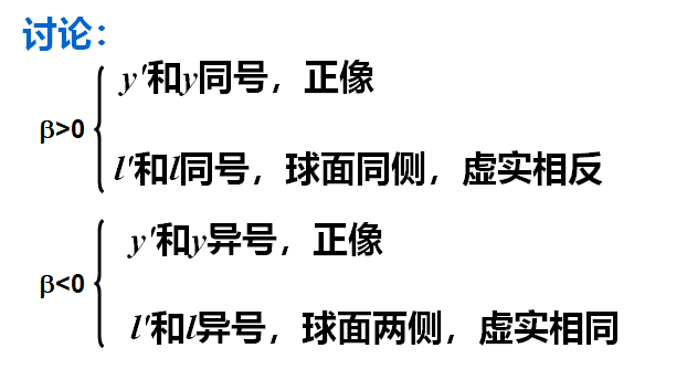 •有限大小的物体经折射球面的成像,除了物象位置外,还会涉及像的正倒、虚实、放大率等问题。