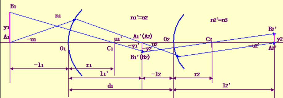 其中b1 和b2 分别为物在A1和A2两点的垂轴放大率