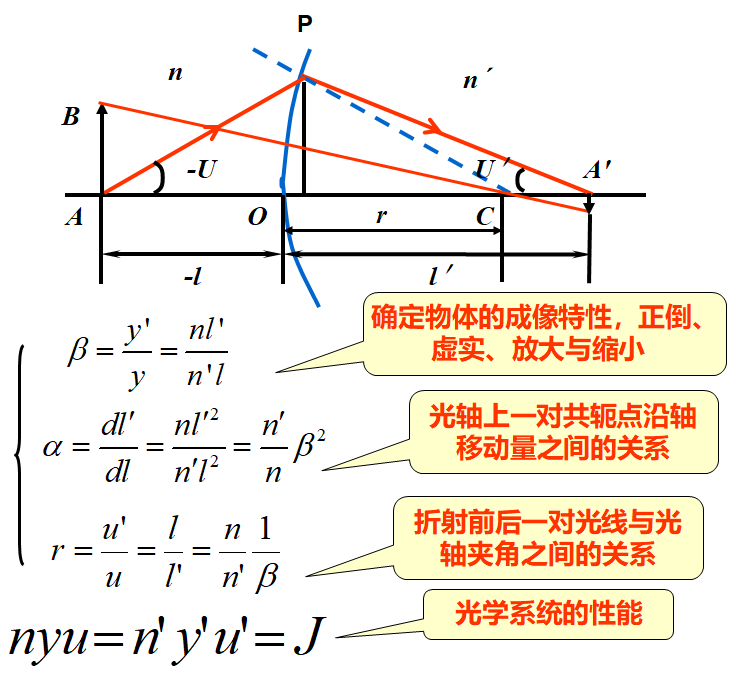 J是光学系统的一个重要特征量。和单个折射球面的相同,J值越大,光学系统就具有更高的功能。