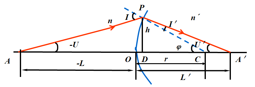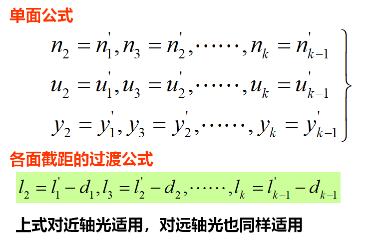 •只要找到相邻两个球面之间的光路关系(过渡公式),就可以解决整个光学系统的光路计算问题,并分析成像特性。