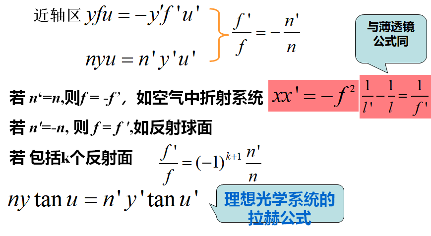 在同一对共轭面上,任一对共轭光线与光轴的夹角正切之比恒为常数