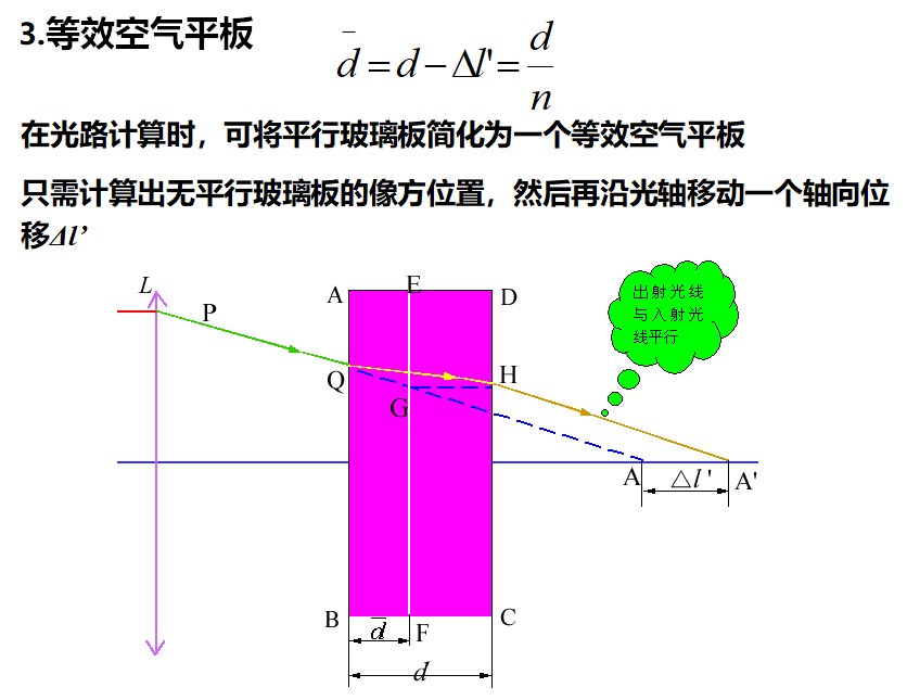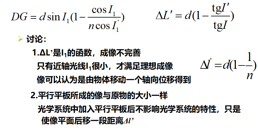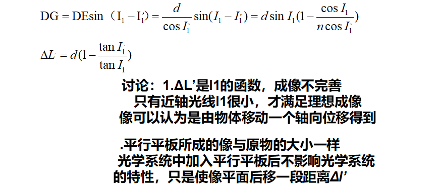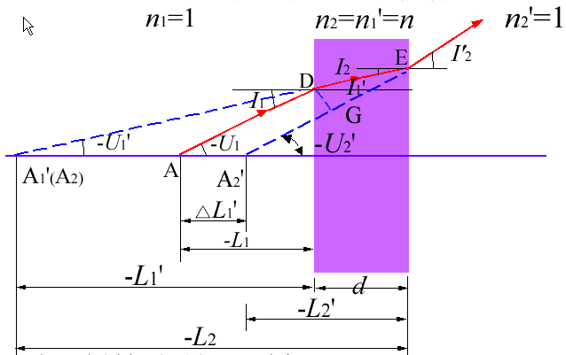 Ø光线经平行平板后,产生侧向位移(平行位移)△T和轴向位移△L’