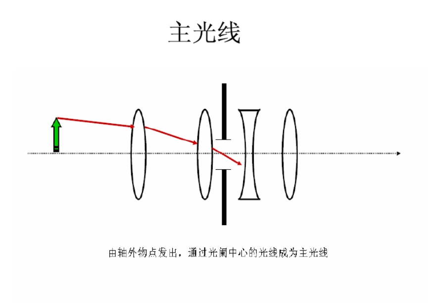 ②通过第一个透镜中心处的斜光线,其光线的延长线通过入瞳边缘处该光线通过透镜折射后经过孔径光阑的边缘处
