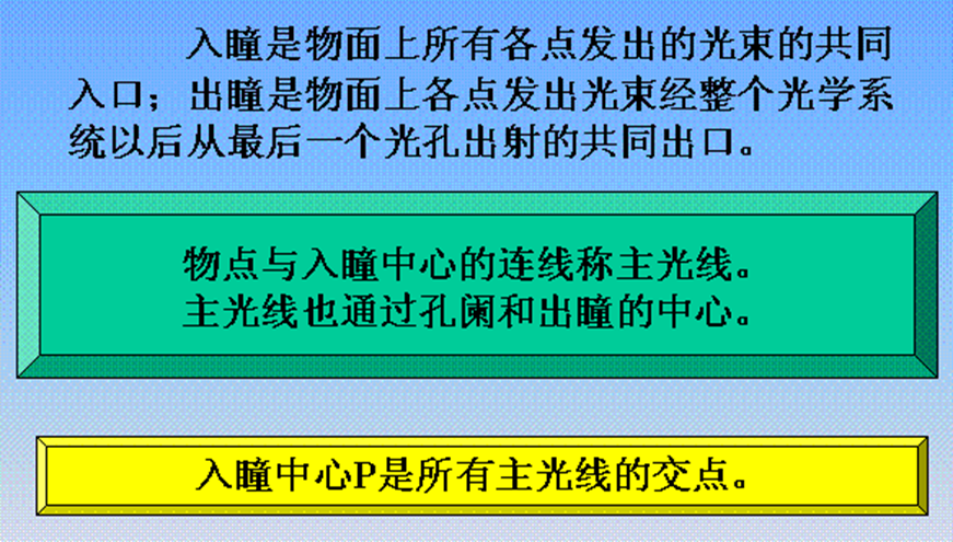 ③通过入瞳中心的光线,经光组后,必然经过孔径光阑和出瞳的中心;