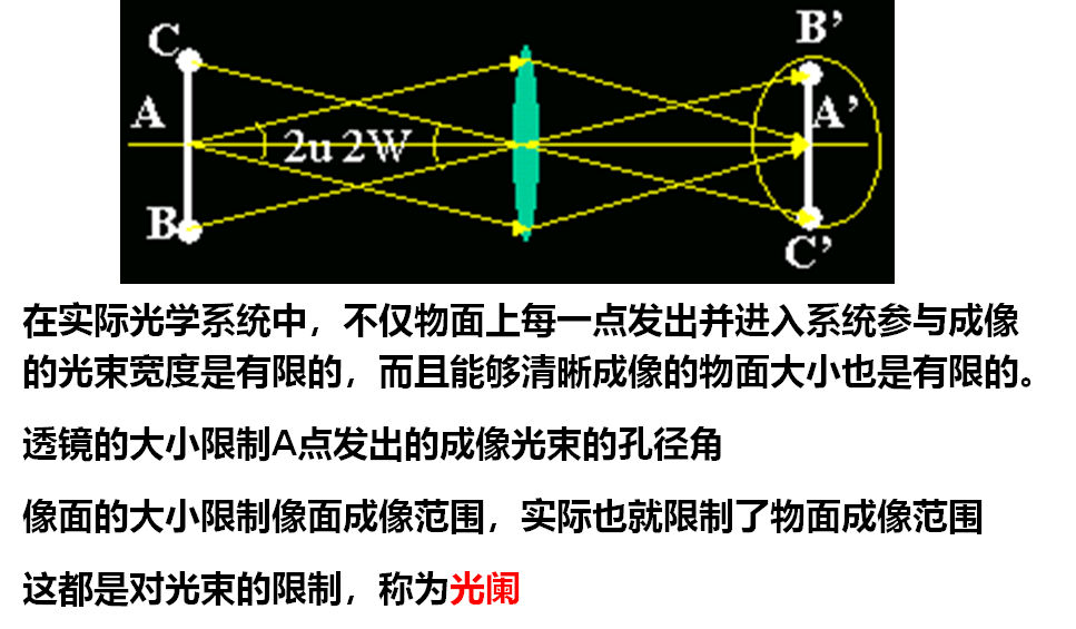 透镜的大小和像面的大小有限,从而限制了成像光束的宽度和成像范围