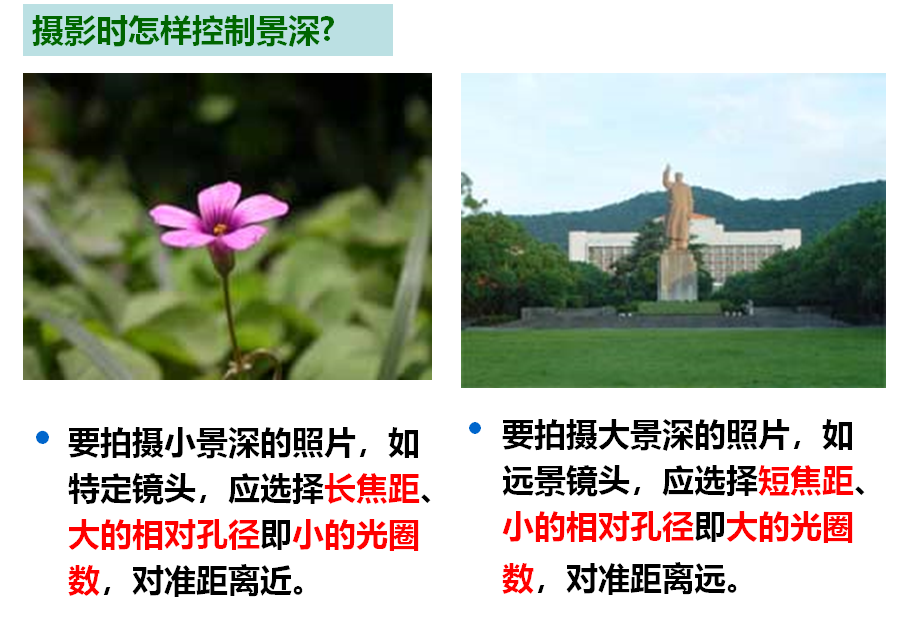 想一想:为什么看许多照片时感觉远近都清楚?