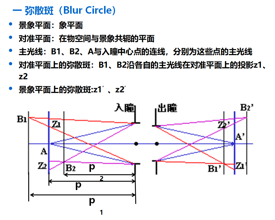 但当此斑对眼睛的张角小于眼睛的最小分辨角1’时,人眼看起来仍为一点。此时,该弥散斑可认为是空间点在平面上的像。