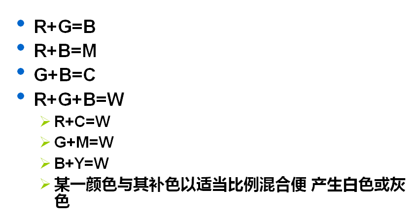 •混合色的总亮度等于组成混合色的各颜色光亮度的总和