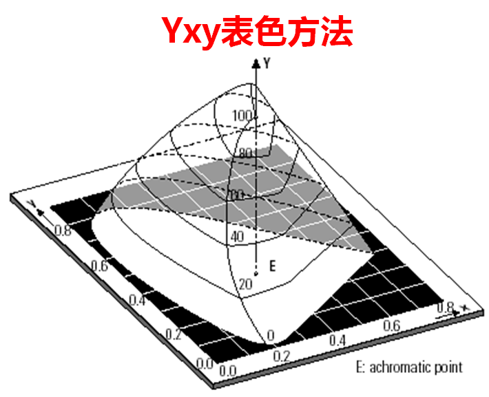 •将相加匹配出等能白光(E光源)时三原色各自的数量定为三原色的单位。即从色彩角度,三原色等量(R=G=B=1)混合得到白光。