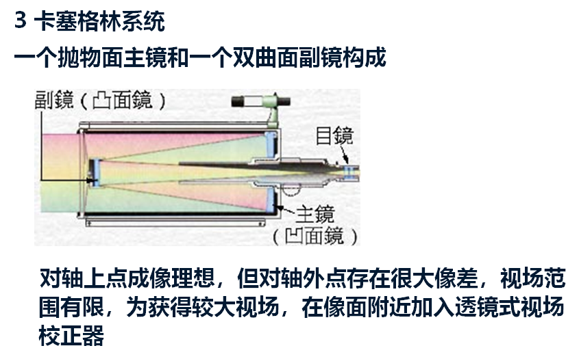 l这种系统对玻璃材料在光学性能上没有特殊要求,反射镜的材料比透镜的材料容易制造,特别对大口径零件更是如此